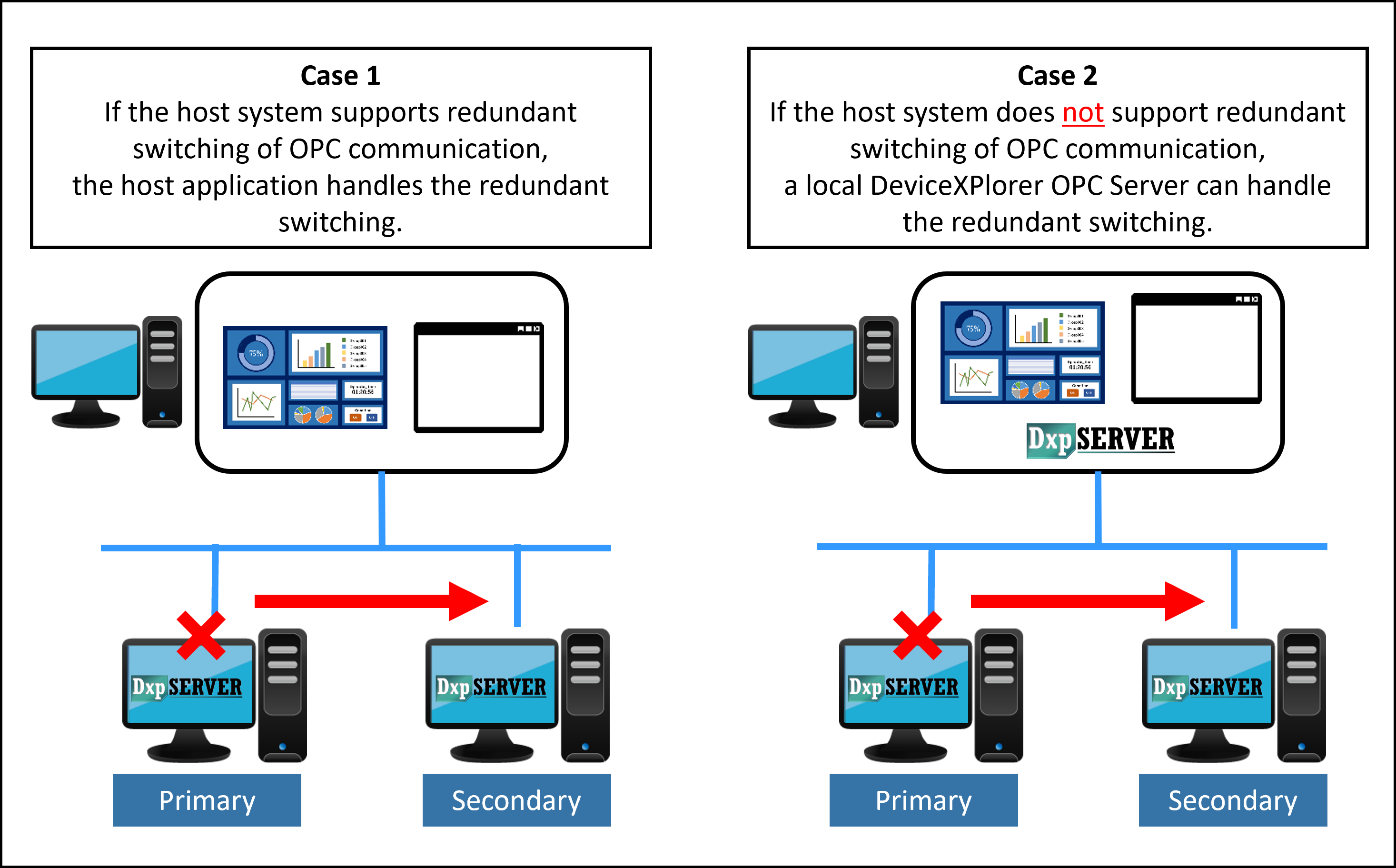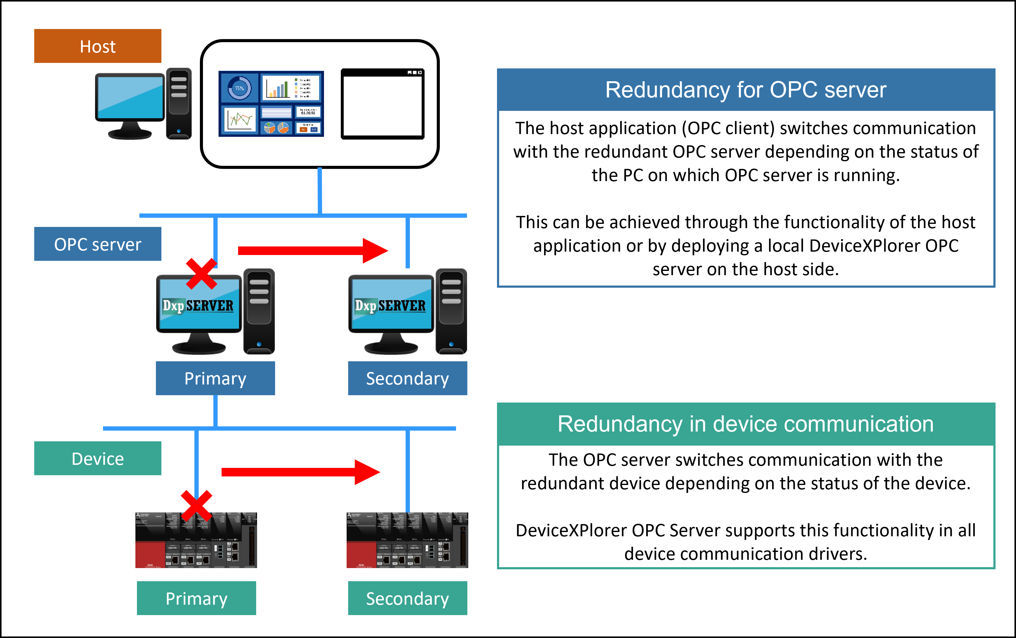 Typically, there are two layers of redundancy with DeviceXPlorer OPC Server.