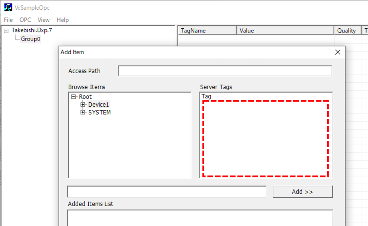 The tag is not displayed and the settings are not reflected on the client when a tag is created on the OPC server and browsed on the client(VcSample).