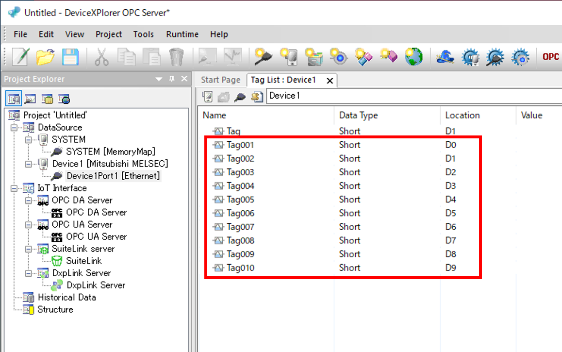 e.g. The tags set at the OPC server cannot be browsed when a client connects to the OPC server.