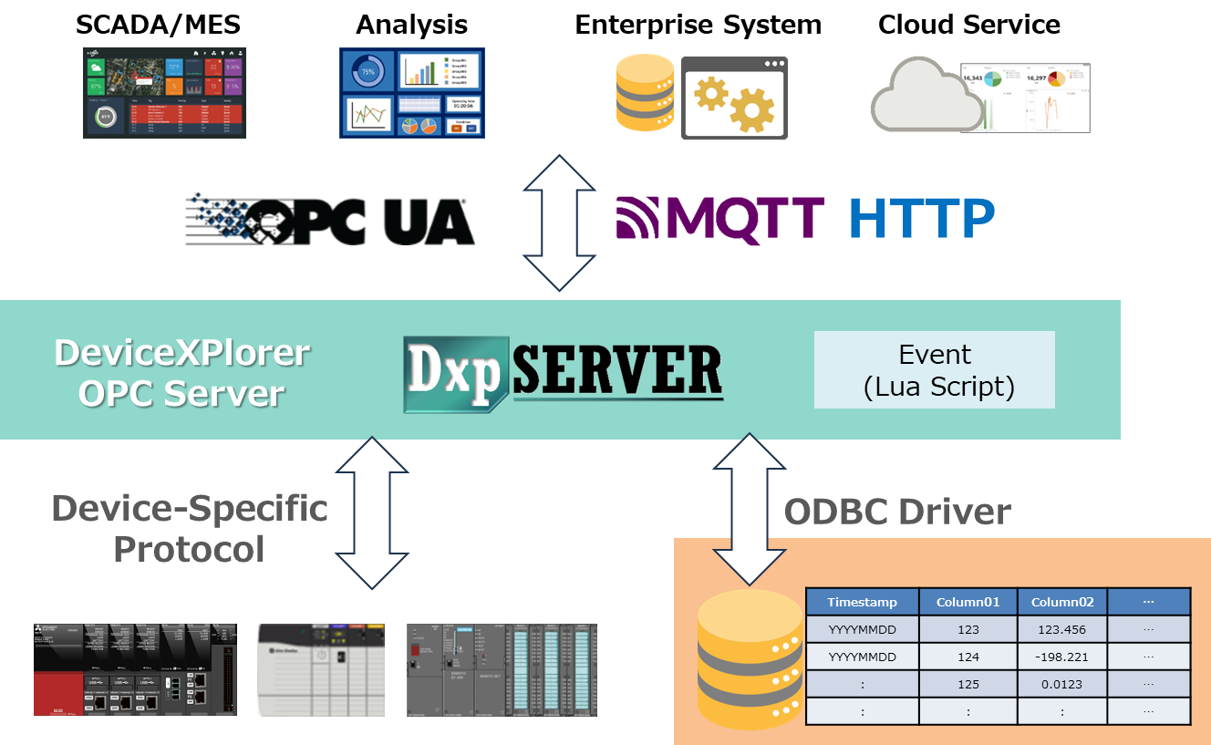 DeviceXPlorer OPC Server has connectivity with SQL databases via ODBC drivers as well as connectivity with other devices.