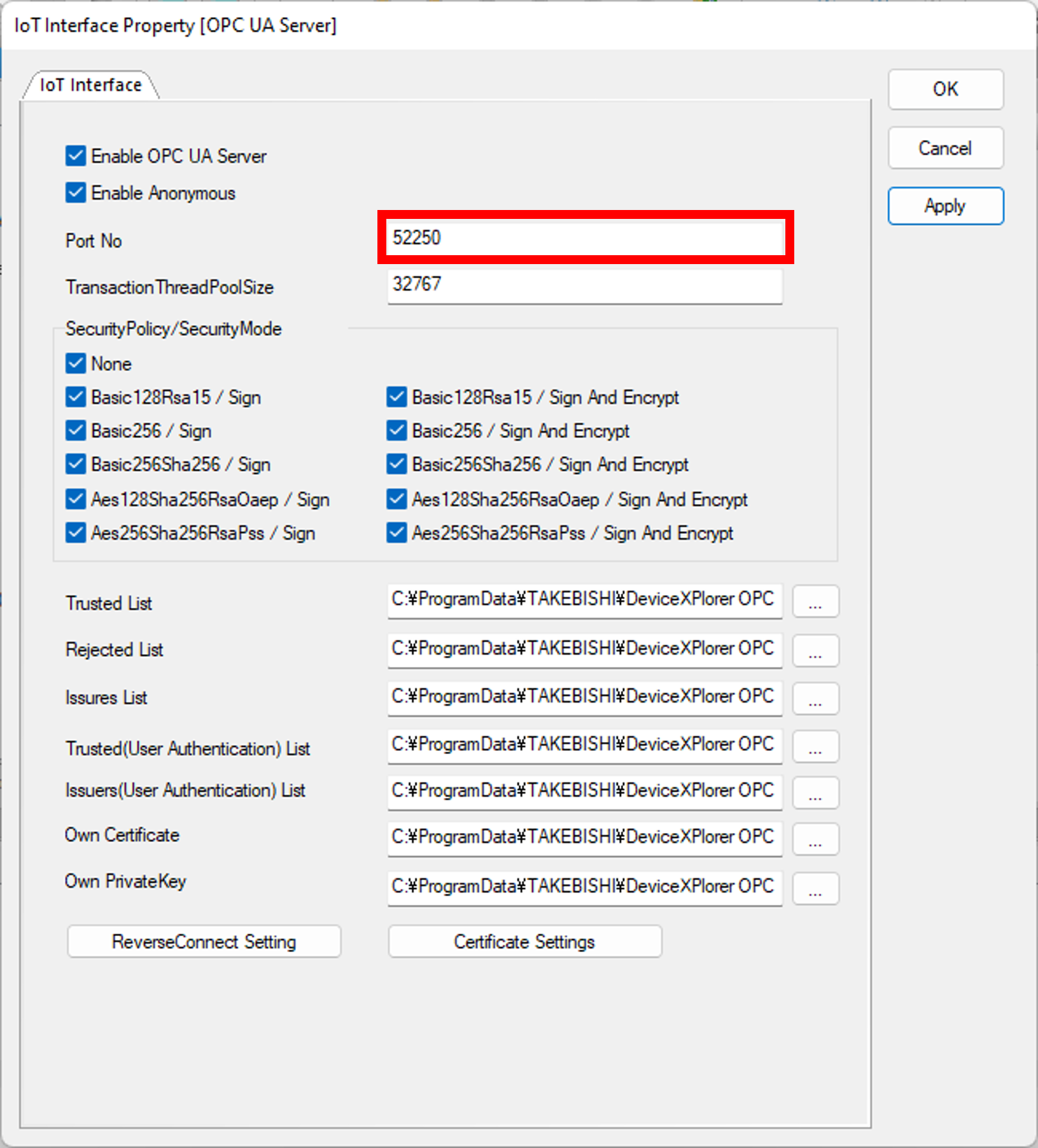 C:\ProgramData\TAKEBISHI\DeviceXPlorer OPC Server 7\pkiserver\own\certs\DxpOpcUaServer.der