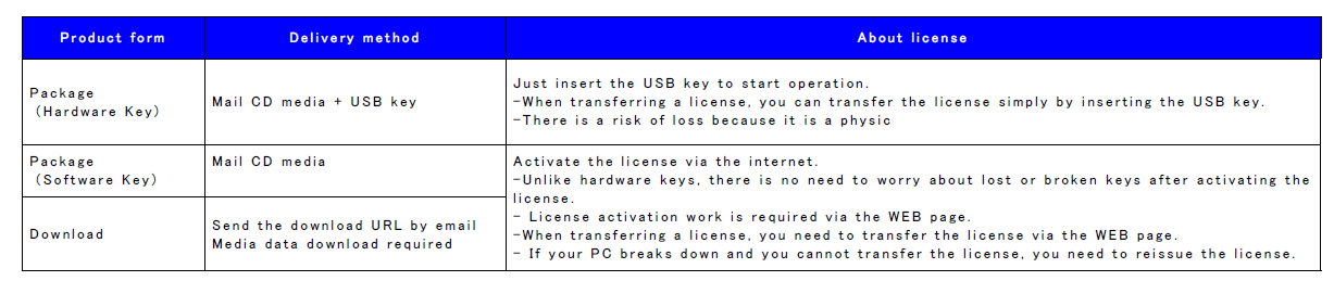 The procedure for activating the license for the download version is shown below due to the change in product form (Hardware Key / Software Key).