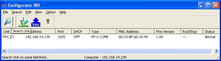 - It is possible to search FX-X COM5 by Configurator WD(IP Address Searching Tool).