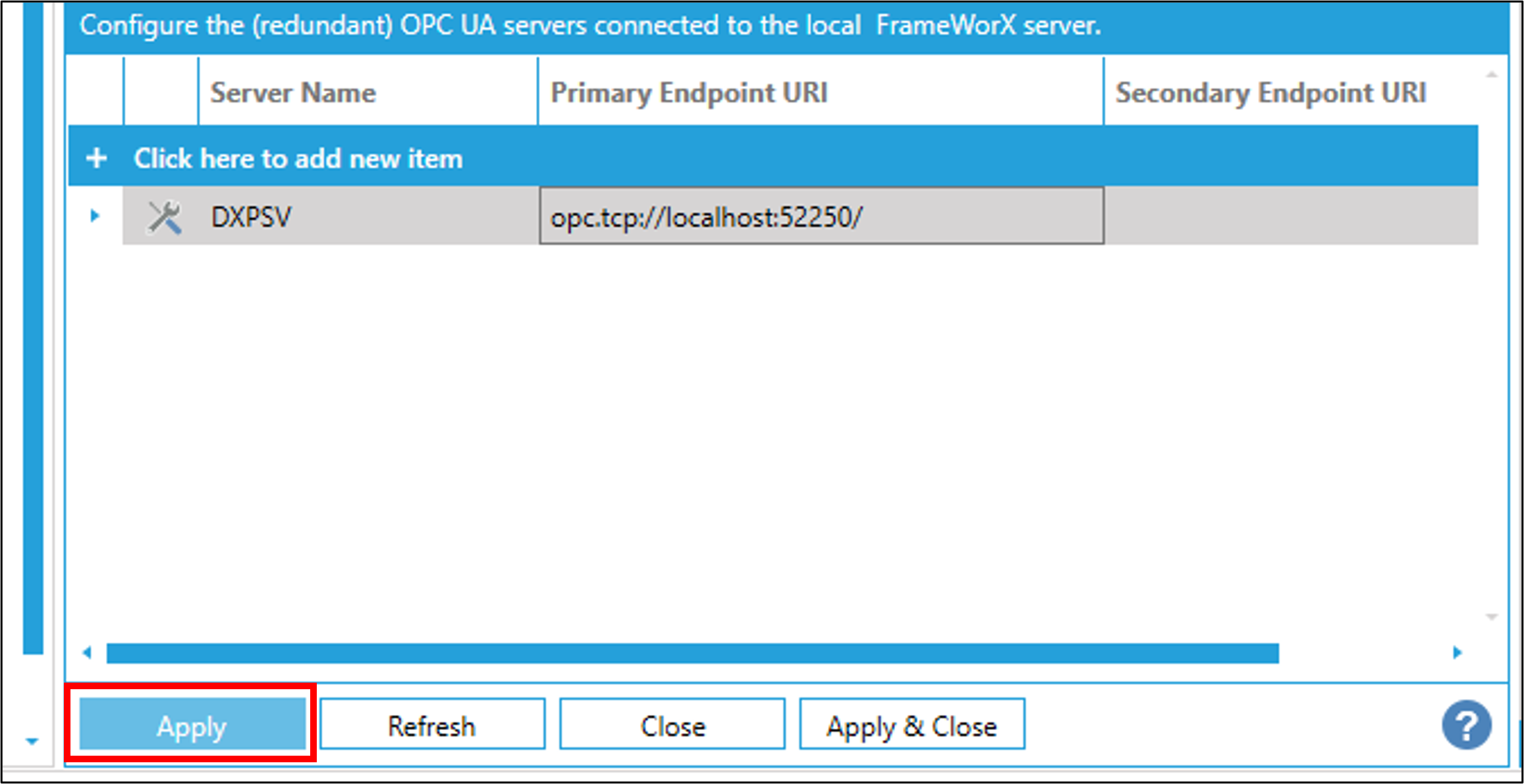 Then click [Click here to add a new item] and set the server name and endpoint URI.