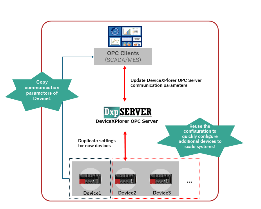 DeviceXPlorer OPC Server has introduced new system tags that expose internal device communication settings to external applications. Previously, configuring DeviceXPlorer OPC Server requires manual input through the dedicated setting tool. With this update, external systems - such as SCADA (Supervisory Control and Data Acquisition) platforms, MES (Manufacturing Execution System) software, or custom applications - can now handle the configuration of DeviceXPlorer OPC Server such as: