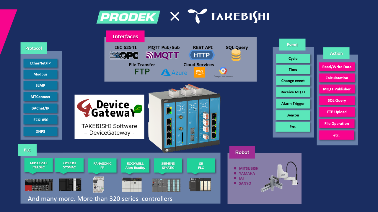 Takebishi has partnered with Prodek through the integration solution for incorporating Takebishi's DeviceGateway, a Docker-based IoT gateway software, into INSYS icom's industrial routers.