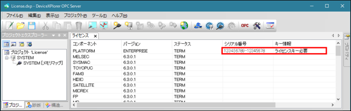 3.7 アプリケーションでライセンスを確認し、キー情報の列に「ライセンスキー必要」と表示されていることを確認します。