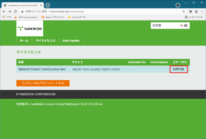3.6 対象のチケットのステータスが「利用可能」に変更されたことを確認し、ライセンスページを閉じます。
