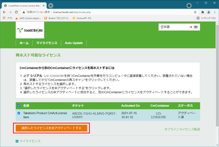 3.4 [選択したライセンスを非アクティベートする]をクリックします。