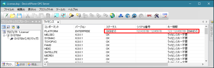 - アプリケーションを起動し、SWキーが適用されていることを確認します。