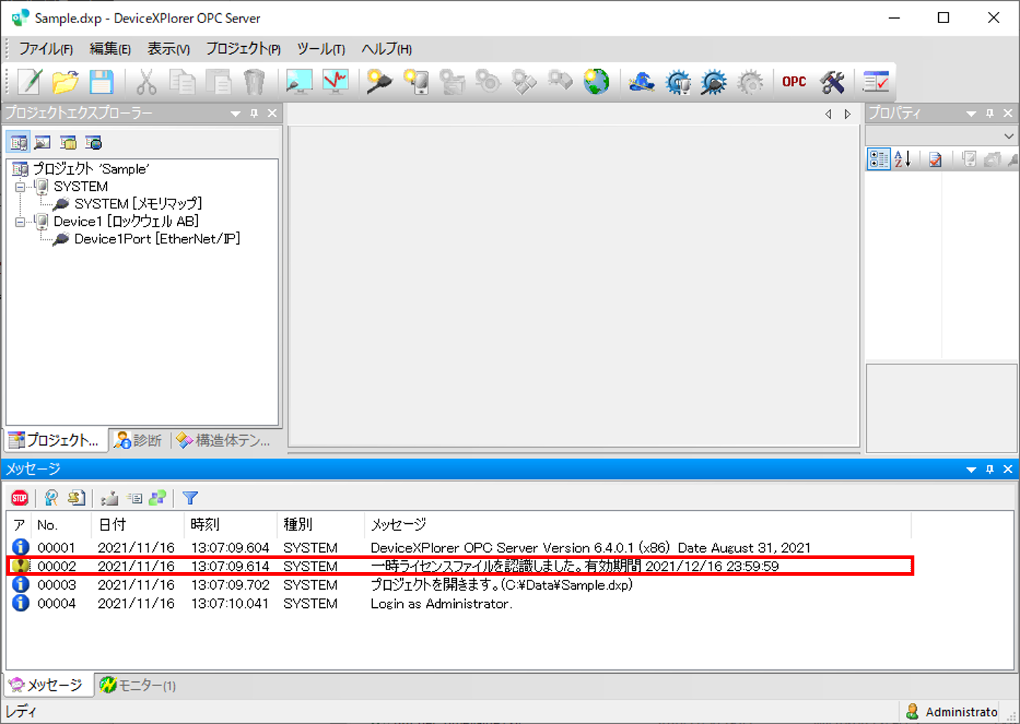テンポラリライセンスについて(デバイスエクスプローラ OPCサーバー)
