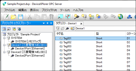デバイスエクスプローラ OPCサーバーの冗長構成