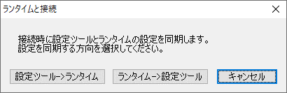 ランタイムの設定内容を読み出し、設定ツールに反映して接続します。