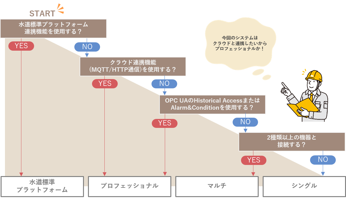 ※ プロフェッショナル機能はMQTTクライアント、HTTPクライアント、OPC UA Historical Access、OPC UA Alarm&Condition機能を指します。