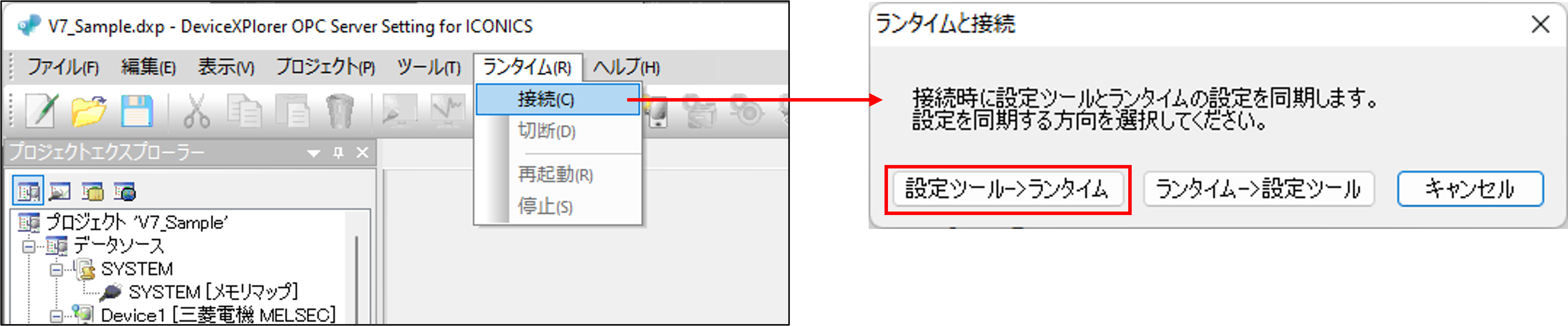 設定ツールで設定を変更した後、ランタイムに変更内容を反映したい場合は、ランタイムに再接続して設定を反映してください。