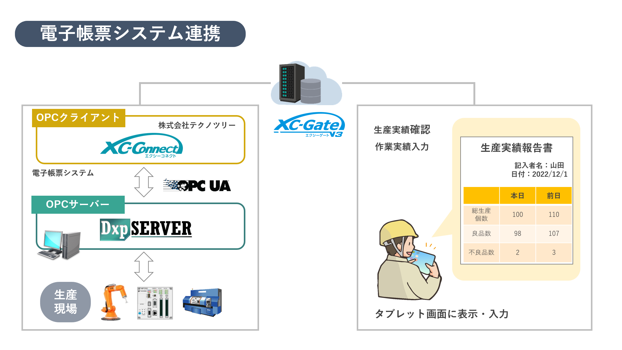 弊社の産業用データ連携プラットフォーム「デバイスエクスプローラ OPCサーバー(DxpSERVER)」と 株式会社テクノツリー様の帳票電子化クラウドサービス「XC-Gate.V3」の連携についてご紹介します。