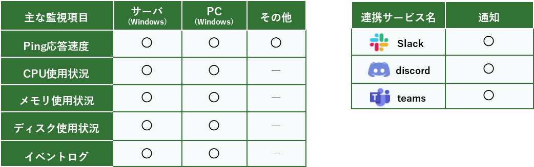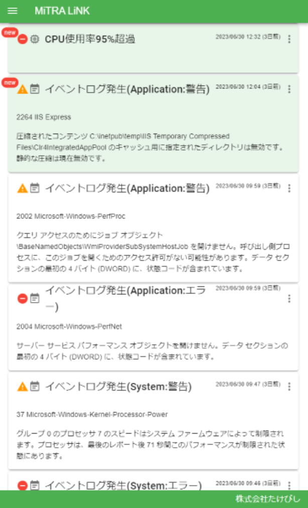 監視対象機器のCPU負荷率、メモリ使用率などが閾値を超えた場合や、イベントログが発生した場合、