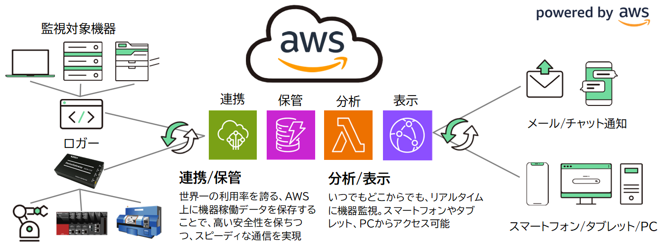 AWS上でシステムを提供することにより、リアルタイムで監視可能