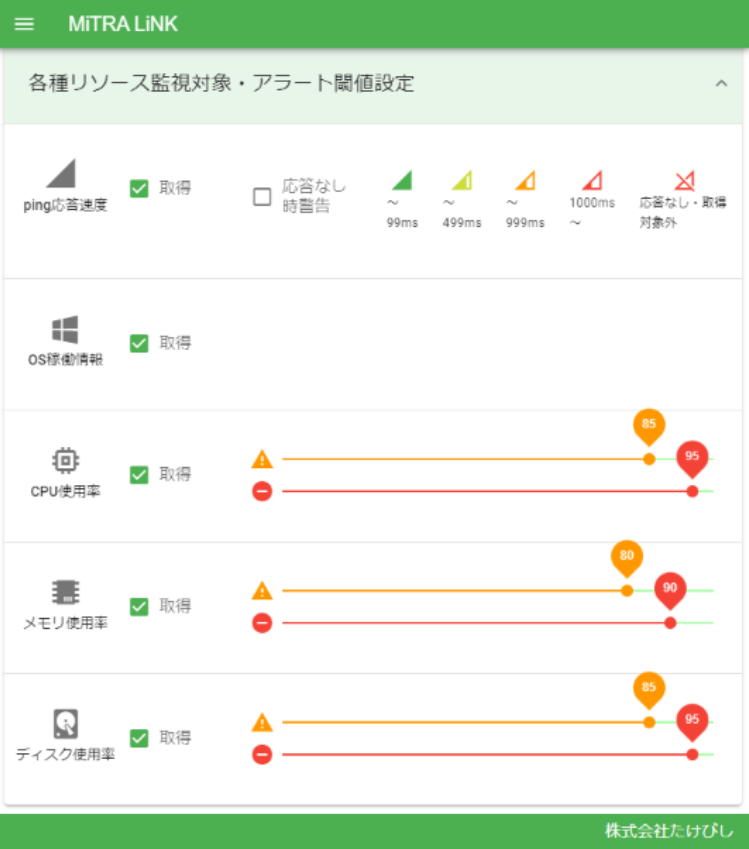 アラート通知を行う閾値を設定することができます。任意の値に設定でき、必要のない通知を回避できます。