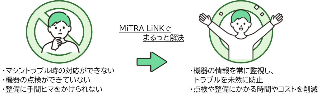 MiTRA Linkが企業のIT機器を見守り、管理が効率化されることで、人材不足を補い、業務停止リスクの低減に寄与します。