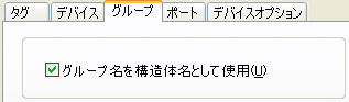 グループ設定画面で構造体名をグループ名として指定し、タグアドレスから構造体名を省略することも可能です。
