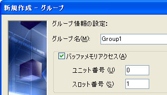 グループ設定にユニット番号とスロット番号を指定することで特殊モジュール(アナログ入出力、温度調整、PID制御、高速カウンタなど)のバッファメモリにアクセスできます。