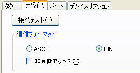 通信フォーマットとしてASCII(アスキー通信)とBIN(バイナリ通信)に対応しています。Ethernetユニットの設定と一致させて使用してください。