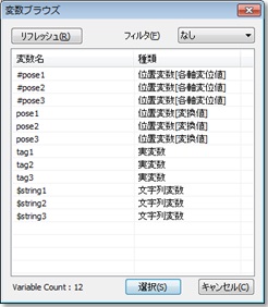 ロボットコントローラに一時的に接続して、ロボットコントローラ内の変数を取得します。列挙された変数の中から変数名を指定できます。