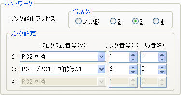 接続局からME-NET、FL-net、HPCリンクを経由した多階層リンク(他局アクセス)に対応しています。中継局のプログラム番号とリンク番号、局番を指定してアクセスします。