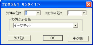 - リンク設定画面で、EthernetモジュールのラックNoとスロットNoを指定して、リンクモジュールの設定を行います。