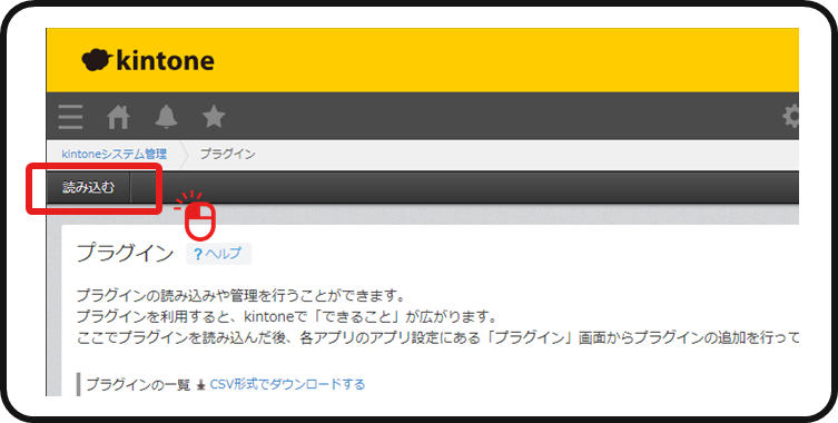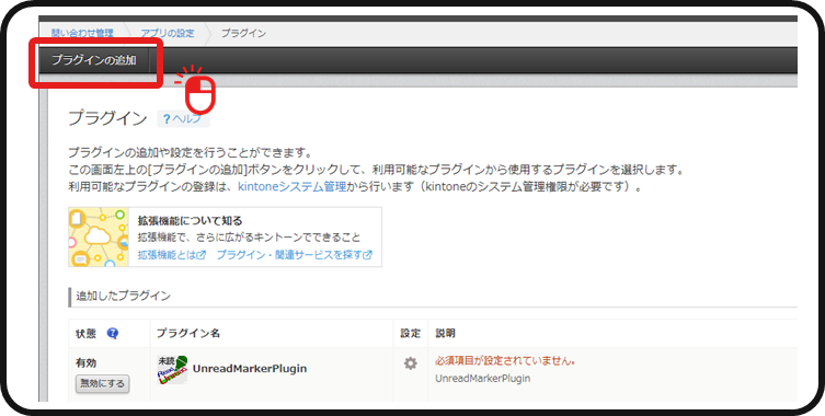 kintoneシステム管理のプラグインから本プラグインを追加します。