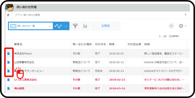 アプリの一覧表示で未読状態の表示が行われることを確認します。