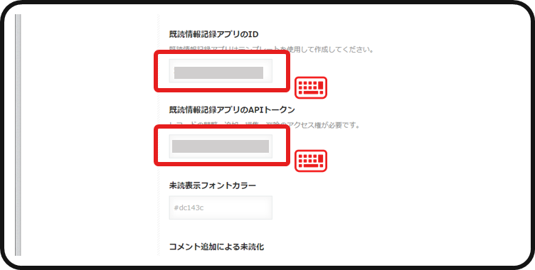 既読情報管理アプリのアプリIDとAPIトークンを設定します。