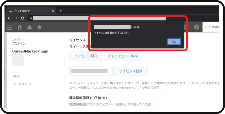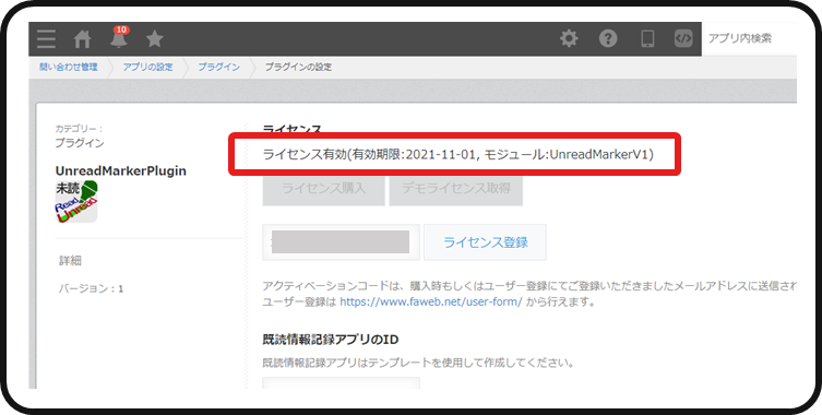 プラグインの設定画面で、ライセンスの有効期限等を確認します。