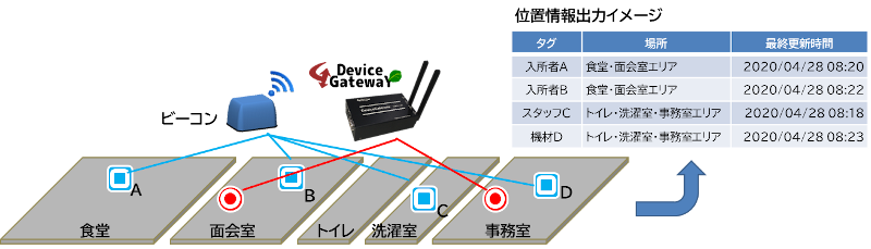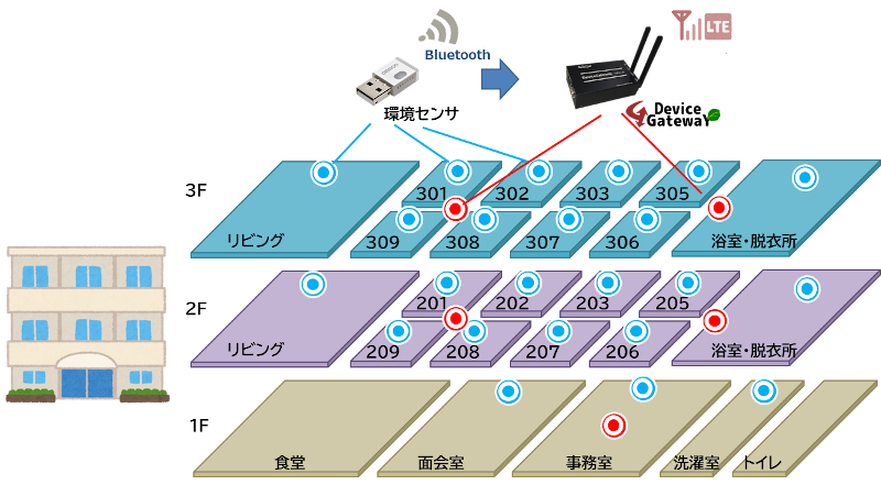 環境センサーのデータが受信できる範囲にデバイスゲートウェイを配置)