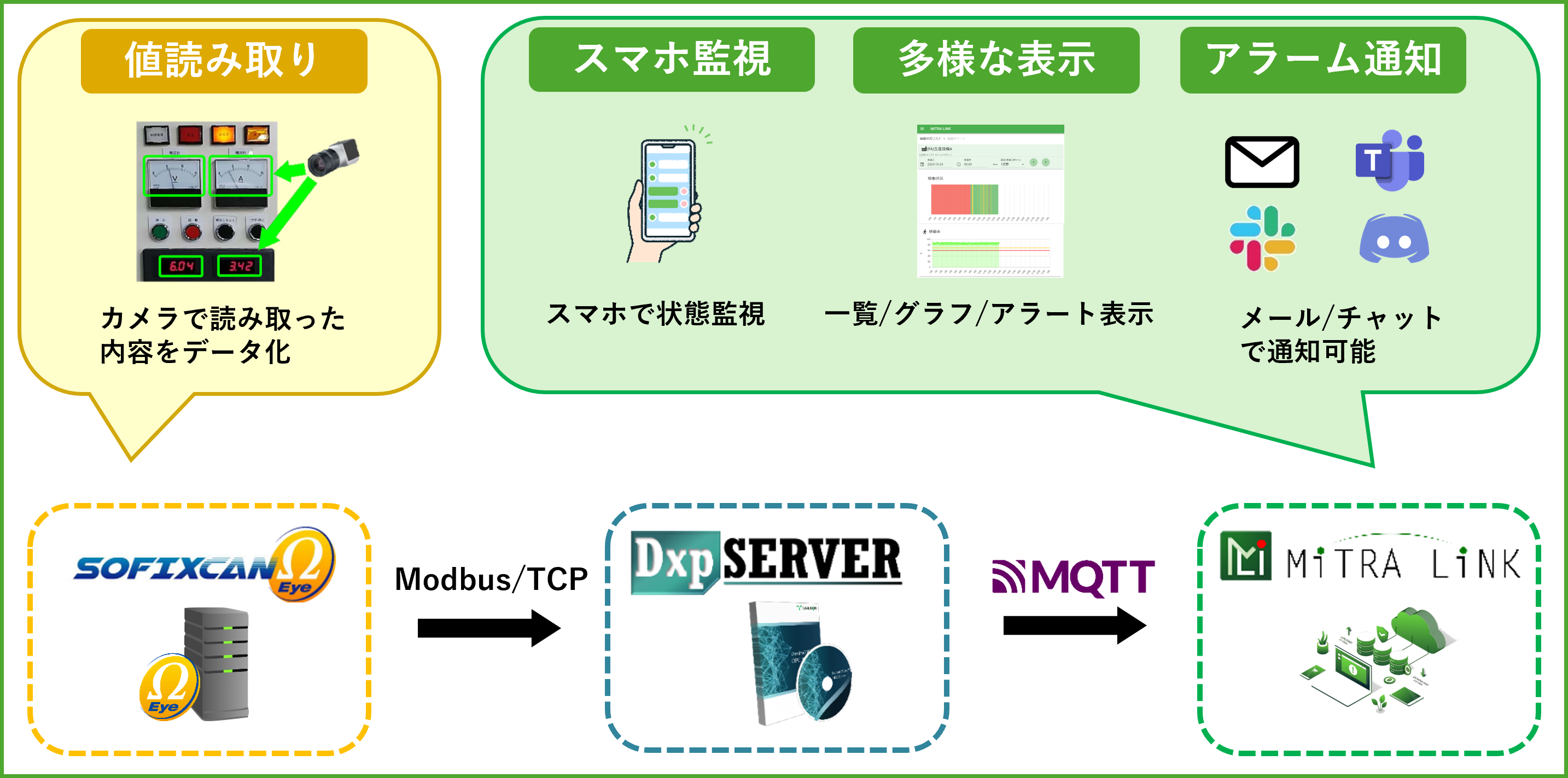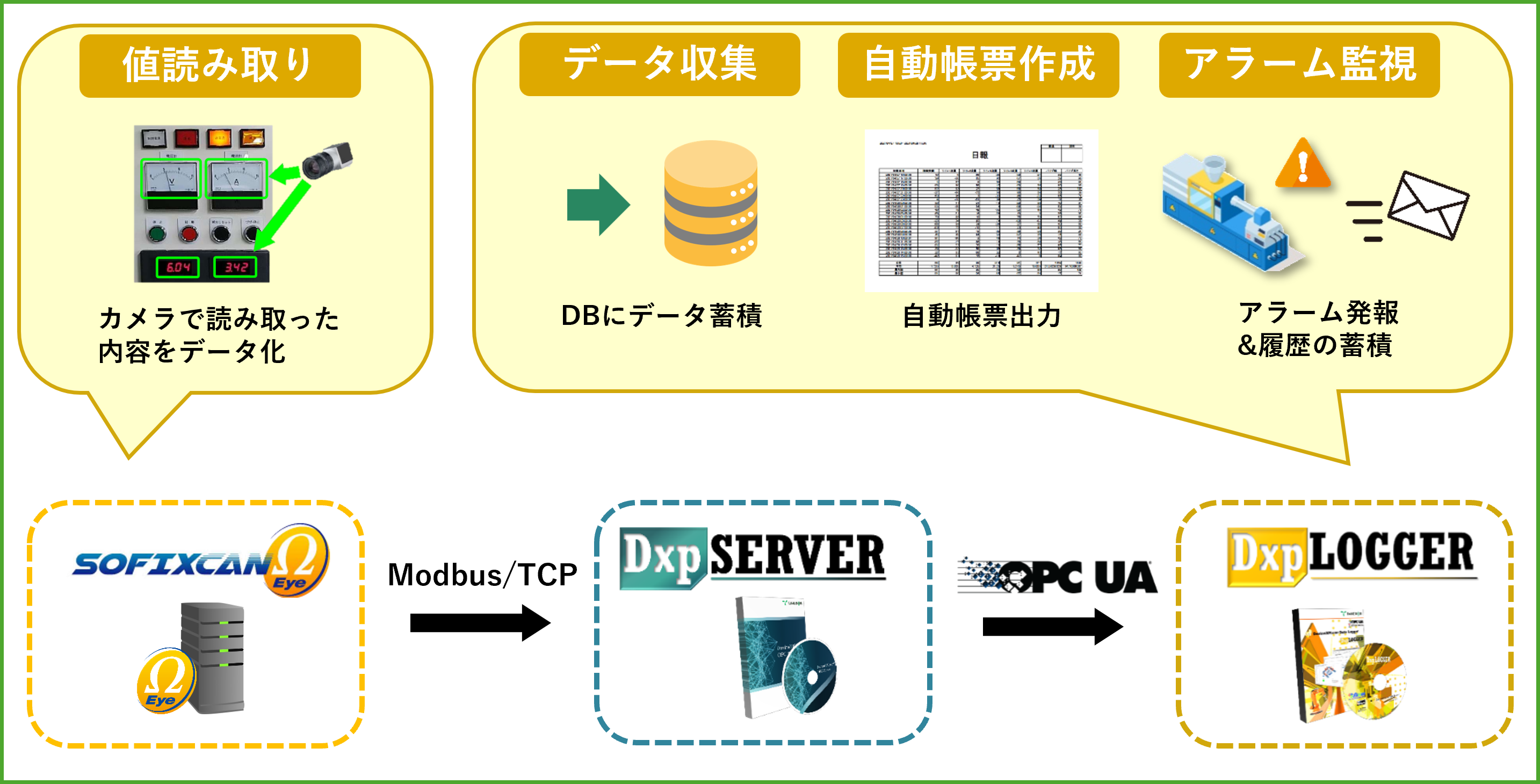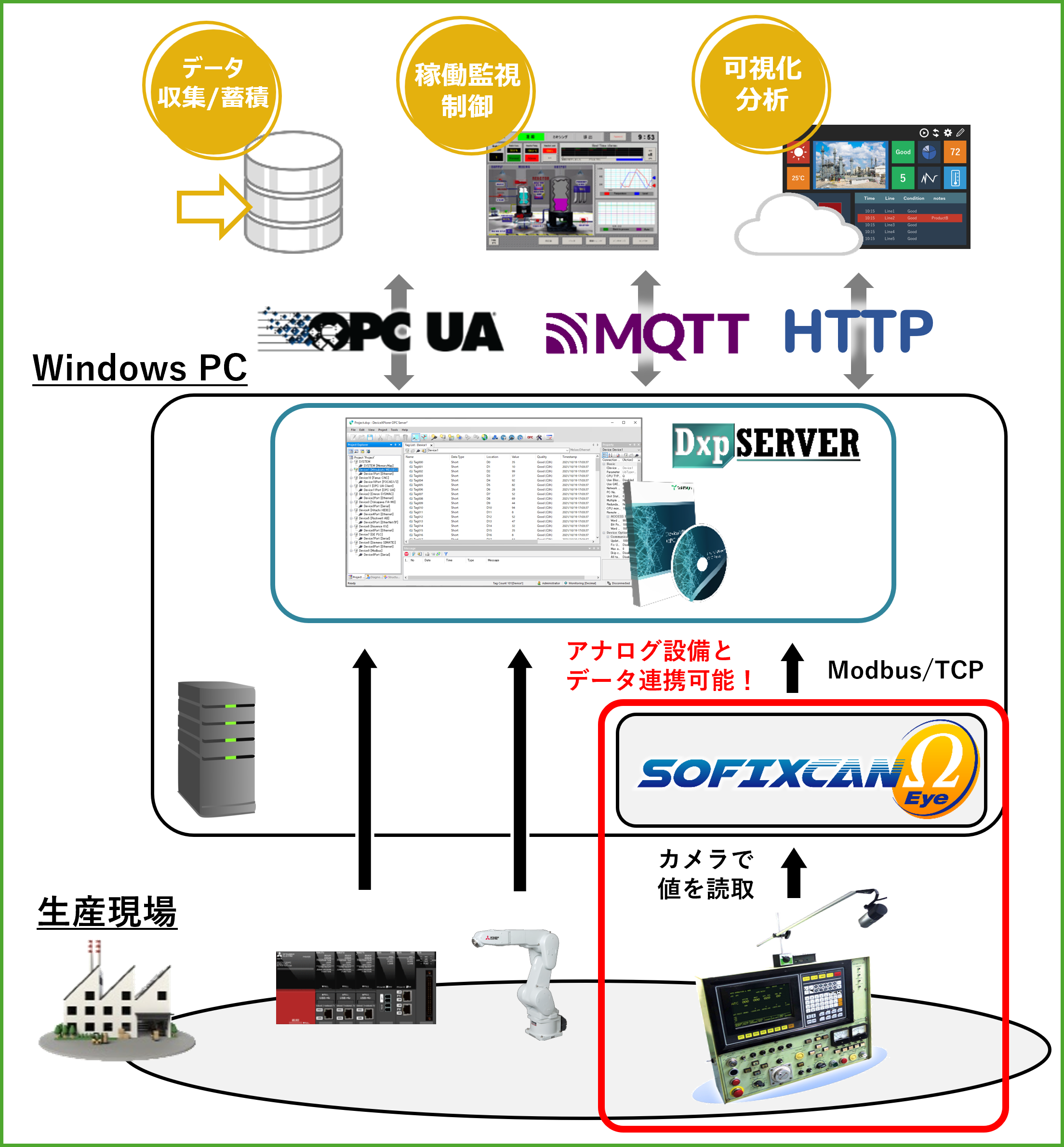 本ページでは、ソフィックスの「SOFIXCAN Ω Eye」と、たけびしのOPCサーバーをはじめとした製品群を組み合わせることで実現できる、アナログメーターやランプのデジタル化・見える化の活用事例をご紹介します。