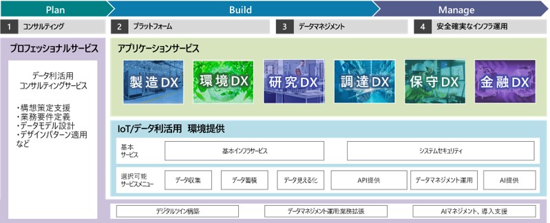 日立製作所の豊富な成功事例をベースにDX実現のためのサービスが体系化されており、戦略の構想策定からデータ利活用基盤の構築、さらに適切なセキュリティ対策、運用管理までワンストップで支援します。