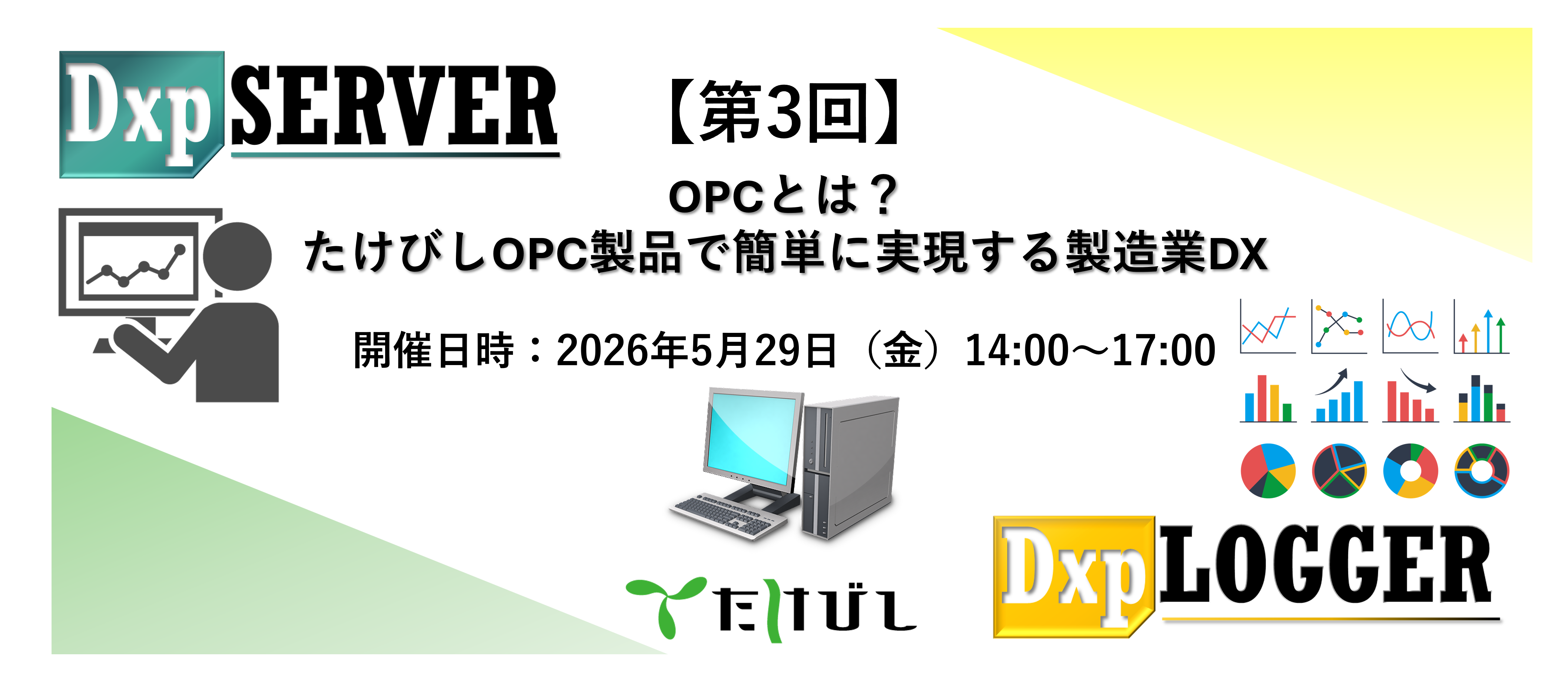 ・OPCの基礎を知りたい方 ・DxpSERVER(デバイスエクスプローラ OPCサーバー)およびDxpLOGGER(デバイスエクスプローラ データロガー)を初めて操作する方、導入を検討されている方 |